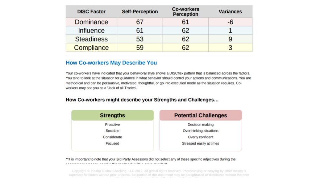 - Ejemplo de reporte de evaluación DISC