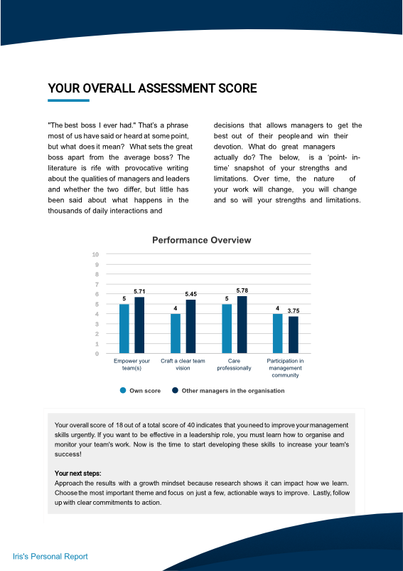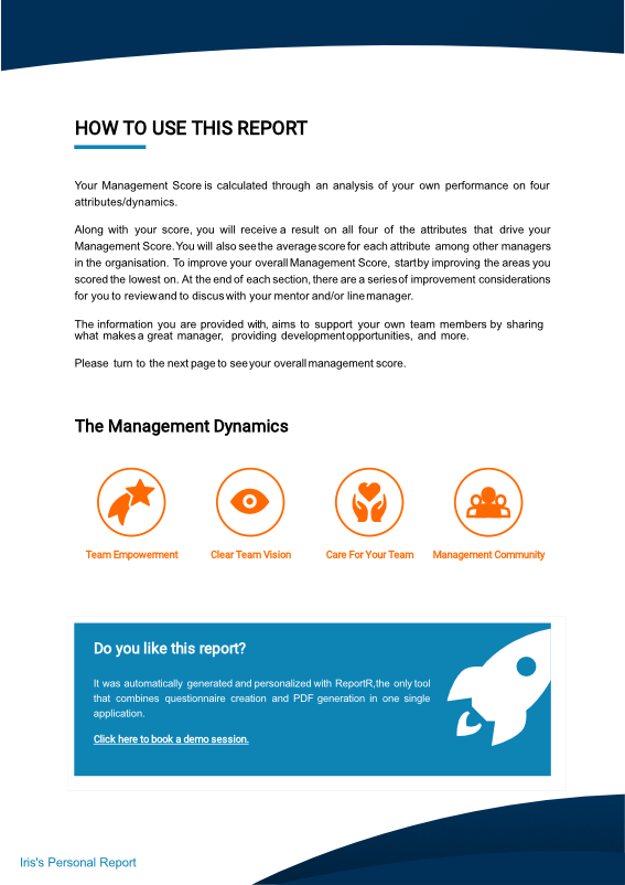 Si está interesado en autogenerar reportes de evaluación personalizados, bien diseñados y con su marca, estaremos encantados de ponernos en contacto con usted para empezar.
