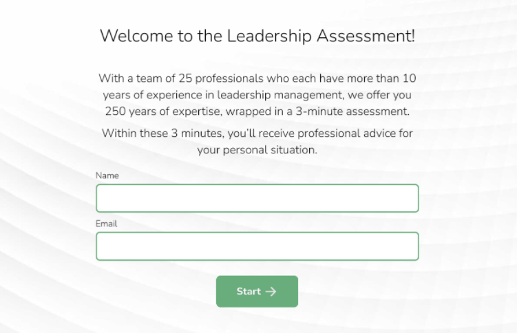 Think of it as a personalized whitepaper: Based on the assessment results, you offer the respondent relevant numbers, quotes and facts for their situation. Remember what we said earlier: instead of letting people browse through a pile of books or articles to find helpful information, you do the skimming work for them: You select what’s relevant and help them save valuable time (and money).