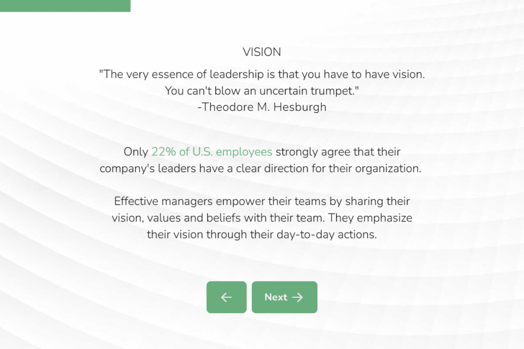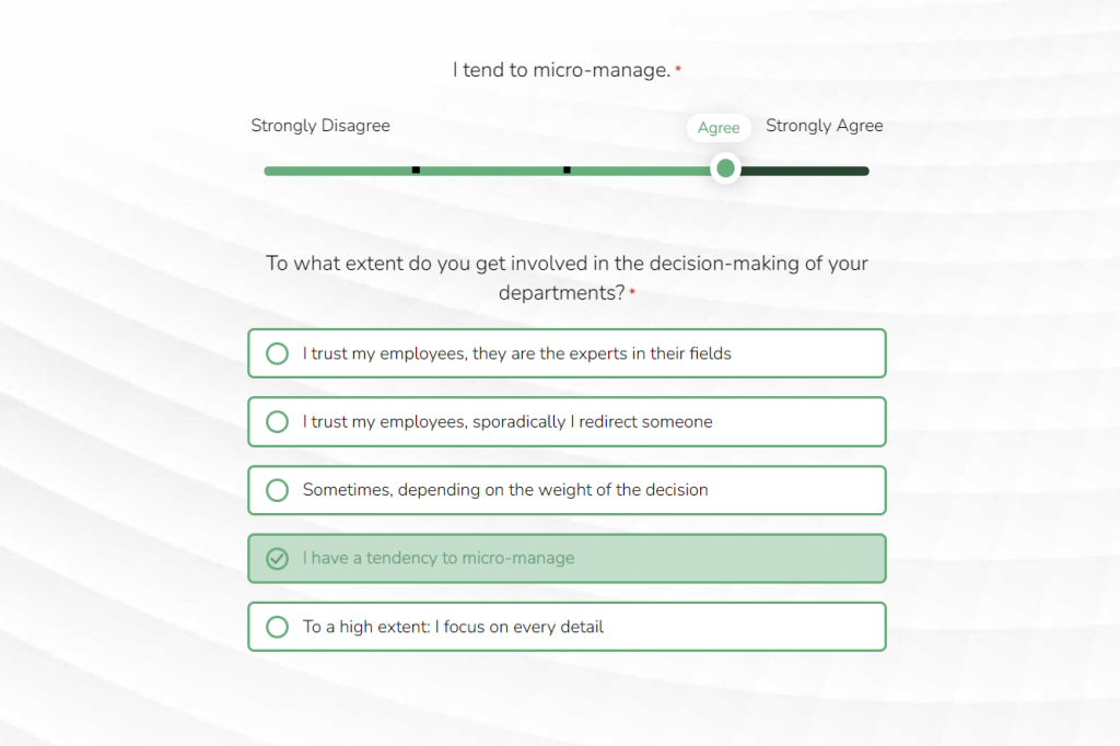 Imagine you’re a leadership consultant who wants to create a management self-assessment. Here we have our first question: